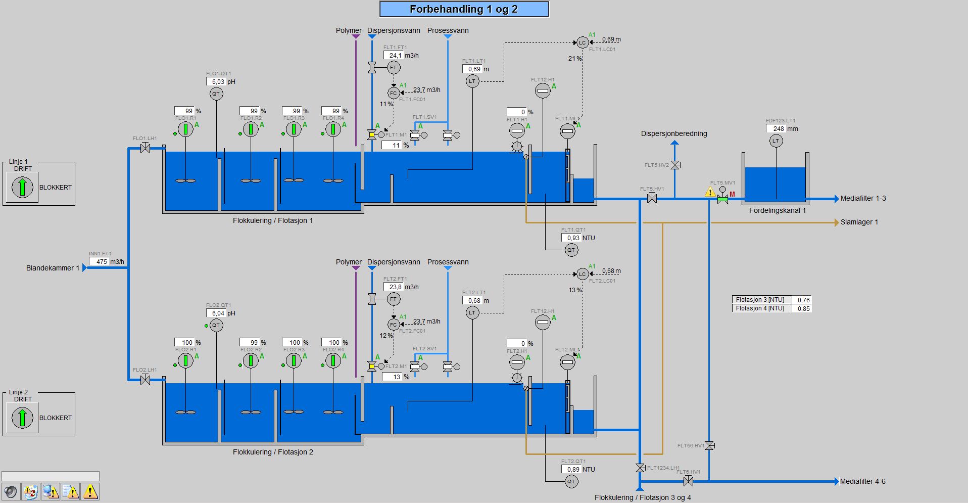 En skjematisk oversikt over hele renseprosessen på Vansjø Vannverk finner du her.
